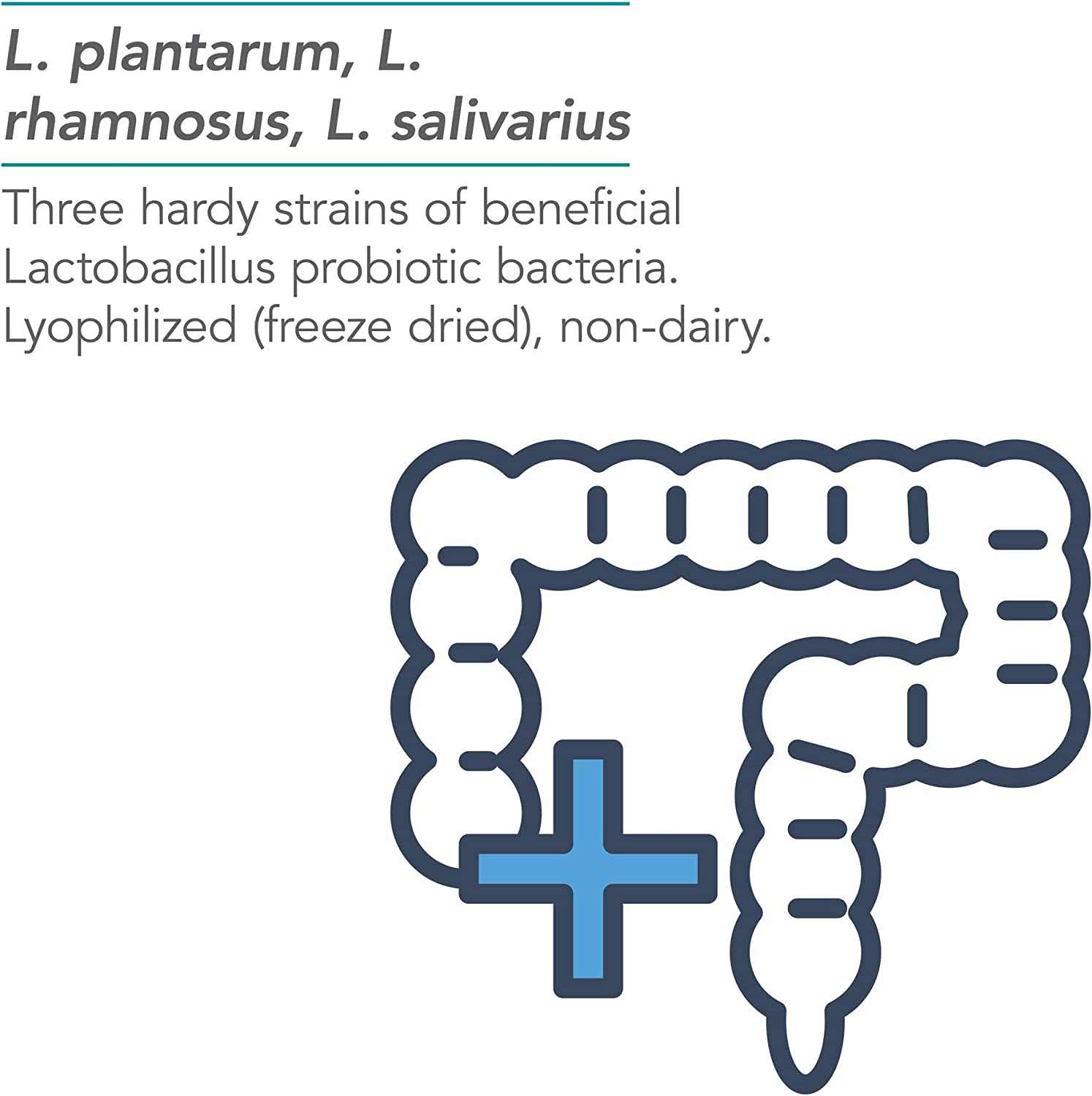 フレンドリーな乳酸菌プロバイオティック バクテリアの 3 つの丈夫な菌株が含まれています。これは、アシドフィルス菌などの耐寒性の低い乳酸菌株の恩恵を受けられない個人にとって、より適切な製品かもしれません。 * 凍結乾燥 (フリーズドライ)。非乳製品およびグルテンフリー。